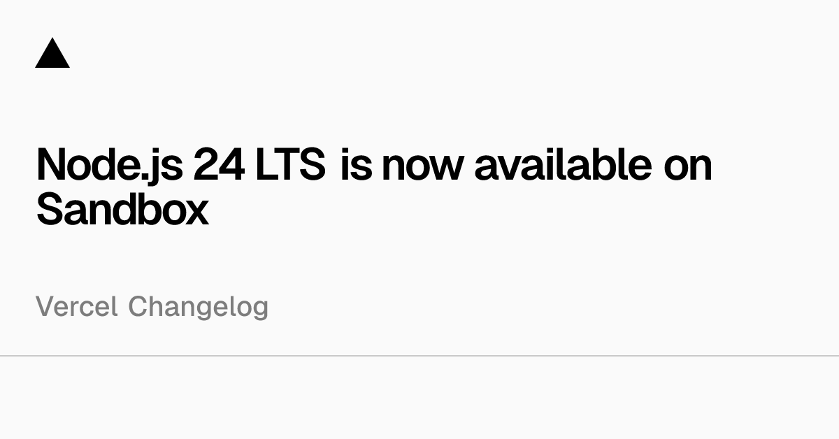 Vercel SandboxでNode.js 24 LTSをサポートし、最新Node.js環境での開発・テストが可能になりました。