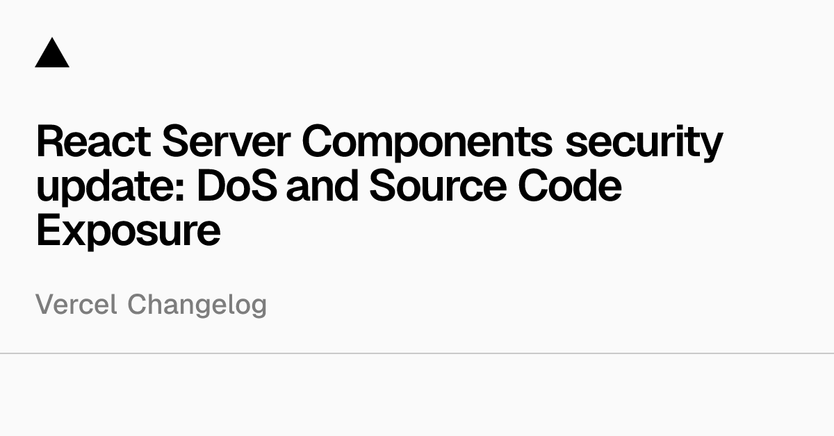 React Server Componentsに存在するDoSとソースコード漏洩の脆弱性に対応するため、Next.jsは緊急のセキュリティアップデートを実施しました。